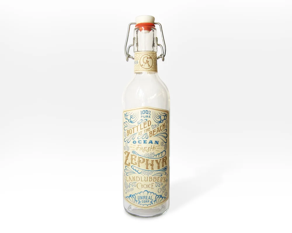 The bottle of ZEPHYR Coastal Air you see below intends to be the start of a of faux product line that explores a variety of type styles, and promises to deliver a full range of superfluous goods.